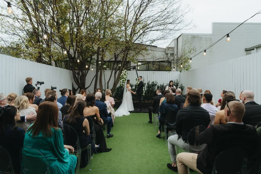 Held outdoors at The Refinery, the ceremony was officiated by the incredible Married by Beck. Her delivery struck the perfect balance of humour, sentiment, and storytelling — all while setting the stage for one of the most memorable moments of the day.